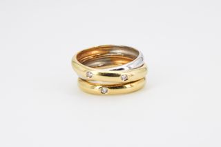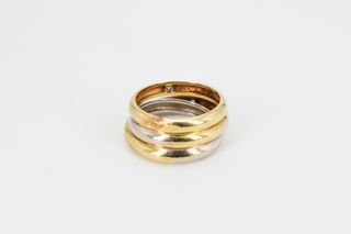 Conjunto de tres anillos entrelazados, una sinfonía de elegancia. Dos anillos exhiben un cálido tono dorado, salpicados de Piedras color cristal que capturan la luz con sutileza. El tercero, en oro blanco, añade un toque de modernidad. Detalles: PESO: 7,05 TALLA: 17 (18,15 MM) KILATAJE: 18K CONTRASTE: Si REFERENCIA: V00287 💎Si tienes cualquier duda, te la resolvemos al instante 💎Atención personalizada por whatsapp 613484498 o teléfono 966391392 💎Nos puedes encontrar en c/Valencia 4, local 3B 03503 Benidorm (QUICKGOLD Benidorm) 💎Estamos de lunes a viernes de 9:00 a 21:00, y sábados de 9:00 a 15:00 (horario continuo)