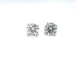 Elegantes pendientes de oro blanco con diamantes (lab-grown) de 6,02 quilates en total. Certificado de auntenticidad por el Instituto Gemológico Internacional. Informe número IGI: LG 710556476 y LG 712501070 Forma: redonda brillante Peso: 6.02 CT Color: F/F Claridad: VS1/VS1 excelente Simetría: Excelente Sin fluorescencia Diseño clásico y brillante. Cierre seguro para mayor comodidad.