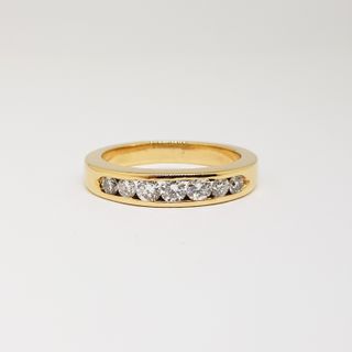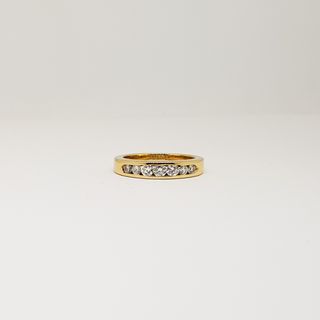 Anillo Media Corona 18KT 7 Diamantes 0.42ct En Total - Joya de segunda mano - Medidas aproximadas: Peso: 4.60g Alto: 3.9 mm aprox Grueso: 1.05 mm aprox Talla 10(ES) / 15.9 mm - Joyería Referencia: 1274M - Sin Sello Joyería. Comprobado con piedra de toque por profesionales. Puedes venir a ver o probarte todas nuestras joyas sin ningún compromiso. Avísanos con antelación para tener la pieza disponible, llamando o contactando por WhatsApp. Telf.: 93 576 85 39 WhatsApp: 630 040 220 Posible recogida en tienda: Rda. O'Donnell, 86 Mataró (BCN)