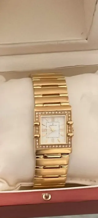 Este reloj de golfi es de muy buena calidad y está garantizado. Su diseño combina tonos dorados y plateados, con incrustaciones de diamantes que le dan un brillo espectacular. - Diseño de lujo con incrustaciones. - Combinación de colores dorado y plateado.