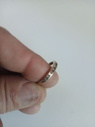 Precioso anillo de oro de 14 quilates,tamaño 19 mm peso 2,30 gramos. Rodeado de 10 diamantes de talla brillante con un total de 0,40 quilates . Claridad VS2 y Color G, con un brillo excepcional.