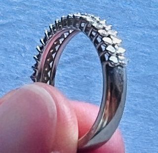 ¡Pieza única y luminosa! fabricación sobre medida inspirado en un motivo de estrella estilizada (similar al icónico "Angel Star" de Mugler). - Oro blanco 18 quilates (750/1000), montura fina, ligera y elegante (peso total aprox. 7 g). Poinçon de oro verificado por joyero profesional. - Diamantes blancos de bella calidad (brillo intenso y fuego excepcional, pavé-sertis múltiples para un efecto estelar radiante). - Talla actual: 48 (equivalente aprox. 15.3 española), ajustable en joyería - Anillo de compromiso Entrega en mano. Contrato de compraventa privado. Precio de venta negociable ligeramente para venta rápida.