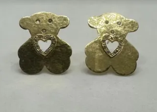 Pendientes de oro de 18 quilates con un diseño de oso y corazón. - Fabricados en oro de ley 750. - Detalle de corazón con pequeños diamantes incrustados. - Cierre de presión omega .