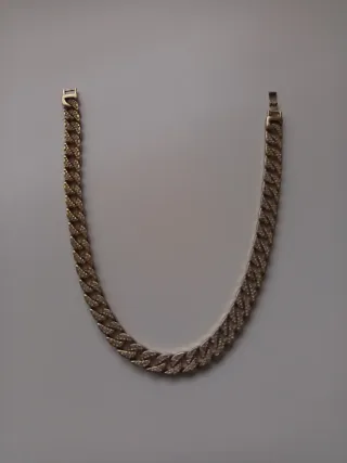 Elegante cadena con un diseño de eslabones cubanos, adornada con pequeñas incrustaciones de diamantes. 50cm - Acabado plateado brillante. - Cierre de seguridad.