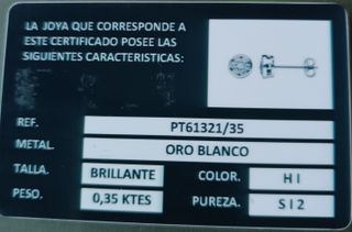 Preciosos Pendientes oro Blanco 18K Peso total 1.05 gramos Montados Con 4 Garras cada una Quilates totales 0.62 Ct Quilates de uno 0.32 Ct Medidas4.16 × 2.19 mm Grado y Color VS/D Certificación si El Otro 0.30 Ct Grado de Claridad y color VS/D Medidas 4.08 × 2.25 mm Son unos precios pendientes Con unos destellos increibles, me encantan; No vas a pasar desapercibida, son super finos y elegantes Ver Fotos por tavor Se envía en Caja de lujo y certificado GRACIAS M.V✨💫