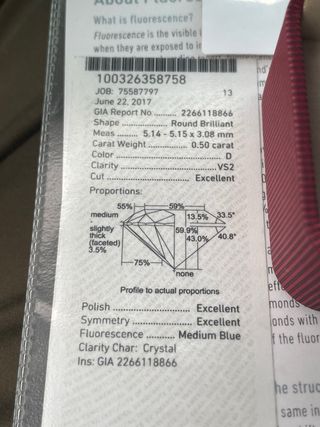 diamante natural0.5 quilates color D Vs2 excellent