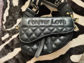 Bolso negro con diseño acolchado y el texto Forever Love bordado. Sólo usado un par de veces. - Diseño acolchado tipo diamante. - Correa ajustable con detalles de logo. - Cierre de solapa. - Herrajes dorados.