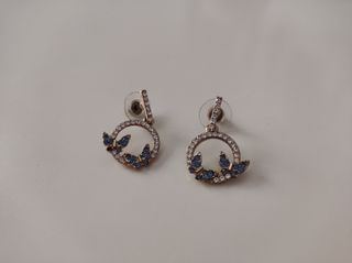 SIN ESTRENAR. Preciosos pendientes con diseño floral. Color azul y dorados ✨. De tuerca. La tuerca es un diamante sintético, se ven preciosos. No se ponen negros. - Dos pendientes de metal dorado con circonitas azules. - Diseño elegante y delicado. - Ideales para cualquier ocasión.