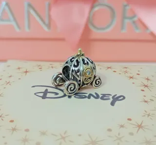 Charm Carruaje Encantado de Cenicienta 100 Aniversario de Disney con Diamante sintético Oro Bajo de 14k, Plata de primera ley.