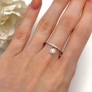 Elegante anillo de compromiso de Fina Garcia. Una pieza delicada y brillante. - Diseño con un diamante central. - Acompañado por pequeñas gemas a lo largo de la banda. - Metal plateado. No me acuerdo muy bien de la talla