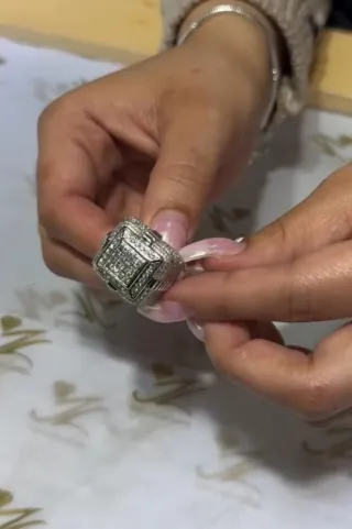 Elegante anillo de oro blanco con diamantes, acompañado de su certificado. - Diseño con múltiples diamantes. - Certificado incluido.