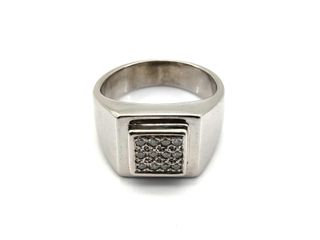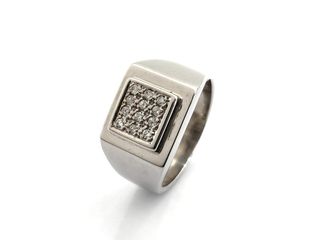 Elegante anillo de caballero fabricado en oro blanco de 18 quilates. Destaca por su diseño con incrustaciones de diamantes. Venta en persona. - Material: Oro blanco 18kt. - Piedras: Diamantes.
