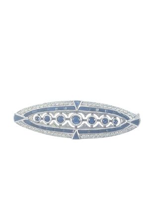 Preciosa pieza de joyería antigua. Se trata de un broche de estilo Art-decó. - Es de color oro blanco 18k con diamantes y zafiros. Estado impecable. Pieza auténtica de época!