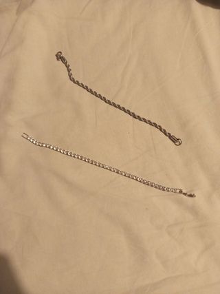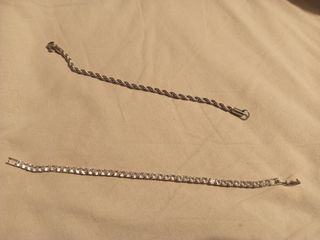 Conjunto de dos pulseras. - Una pulsera con incrustaciones de diamantes. - Una pulsera de plata con diseño trenzado.