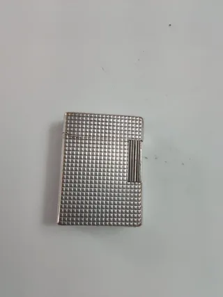 Elegante encendedor S.T. Dupont con baño de plata y patrón de punto de diamante. - Diseño clásico y refinado. - Acabado brillante.