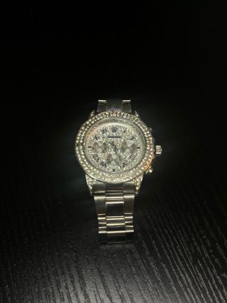 Reloj plateado con diamantes