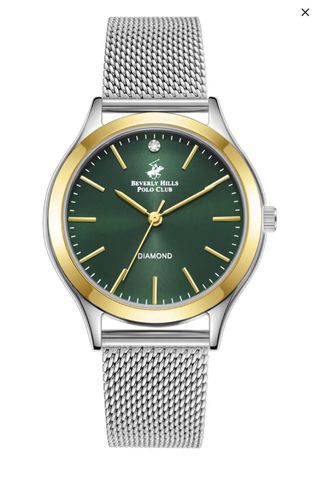 Reloj Beverly Hills Polo Club verde – Nuevo a estrenar Descripción: Reloj Beverly Hills Polo Club original, totalmente nuevo y sin usar, entregado en su caja original. Diseño elegante y moderno con esfera verde muy llamativa, detalles en dorado y brazalete de malla milanesa en acero inoxidable. ✔ Movimiento de cuarzo ✔ Cristal con detalle tipo diamante ✔ Acabado bicolor (plata y dorado) ✔ Ideal para uso diario o para regalar Reloj con presencia, cómodo y muy combinable tanto para vestir como para ocasiones más formales. 📦 Se entrega tal cual, nuevo en caja.