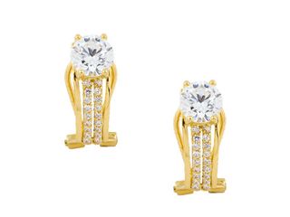 Elegantes pendientes de oro de 18 quilates con un pequeña circonita. - Diseño circular. - Cierre seguro.