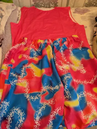 Niña talla S y mujer M/L con goma debajo de los pecho. Vestido y cancán. Se venden juntos o separados. 16€ cada uno.