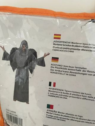 Disfraz de ángel para hombre, perfecto para Halloween. - Diseño en color gris. - Talla L - No incluye Alas Solo puesto un rato