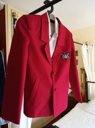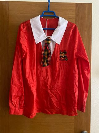 Conjunto de disfraz de colegiala. - Chaqueta roja. - Camisa blanca.