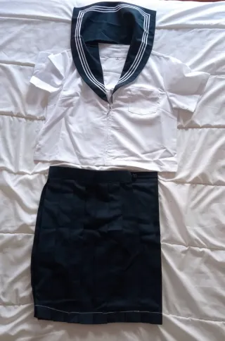Conjunto nuevo sin estrenar de estilo colegial / marinero, ideal para disfraz, cosplay, fiestas temáticas o sesiones de fotos. Incluye: 👕 Camisa blanca con cuello marinero azul marino y cremallera frontal 👗 Falda plisada azul marino 📏 Talla M – Camisa: 47 × 47 cm – Falda: 35 × 40 cm Tejido cómodo y ligero, buen acabado. Soy de Canarias y wallapop no hace envíos Canarias a Península. Si te interesa te lo puedo enviar x Correos certificado con seguimiento del envío fuera de plataforma. #conjuntomarinero #estilocolegial #disfrazmujer #cosplay #falda plisada #camisamarinera #disfrazfiesta #tallaM #nuevo #sinestrenar #modatematica