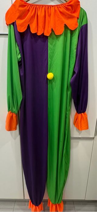 Pijama o disfraz de El Joker, talla M. Está en buen estado y es muy cómodo para dormir o para una fiesta de disfraces. Hombros 46 cm, ancho 54 cm, largo total 165 cm