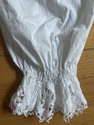 Antiguos pololos o bombacho para traje regional con puntilla de bolillo. Se ha lavado para quitar olores de estar guardado pero mantiene manchas del paso del tiempo que precisan Vanish. Cintura con goma 25 cm, largo 70. Goma extendida 45 cm Pololo baturra pololos pantalón pantalones indumentaria mantilla atrezzo atrezo disfraz peineta fallera mandil