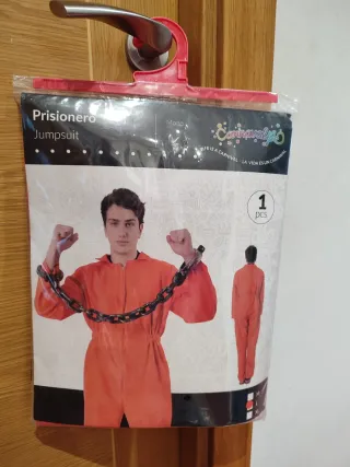 Disfraz de prisionero para adulto. Talla L - Mono completo con cremallera. - Incluye cadenas decorativas.