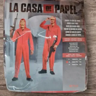 Disfraz inspirado en la popular serie La Casa de Papel. - Talla M/L. - Incluye mono y máscara. - Producto nuevo.