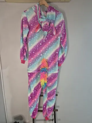 Medidas: - Hombro a hombro: 45cm - Largo de torso: 83cm - Largo total: 137cm Disfraz de unicornio arcoíris precioso, suave y muy cómodo. Perfecto para carnaval, fiestas temáticas, pijamadas o como mono calentito. Capucha con cara de unicornio, cuerno y melena de colores. Talla S/M . Muy buen estado, apenas usado. #disfraz #unicornio #disfrazunicornio #arcoiris #kigurumi #mujer #tallaSM #carnaval #unicorn #unicorncostume #onesie #rainbow #cosplay #cute #party