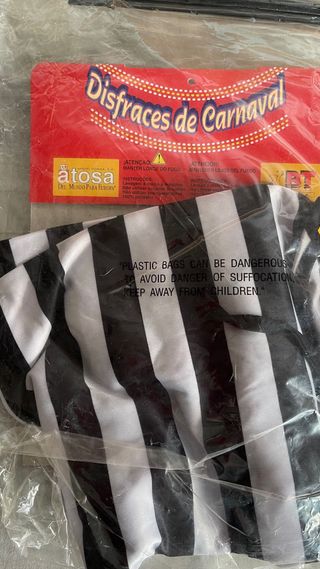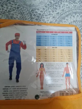 Disfraz de adulto totalmente nuevo y sin estrenar. Nunca ha sido utilizado, lo recibirás listo para usar y estrenar. 📦 Envío rápido: en un máximo de 24 h laborables lo entregamos al transportista para que lo tengas cuanto antes. Detalles: ✔️ Talla: L ✔️ Incluye: Mono con capucha y mascarilla ✔️ Estado: nuevo, sin uso previo (no necesita lavado al recibirlo) ✔️ Material: cómodo, ligero y fácil de llevar durante horas Ideal para quienes buscan calidad y estreno en carnaval. Tiro mono (medida del busto) 84 Largo Mono 155 Sisa mono (axila a axila) 60 máx Ancho mono (medido en plano, el contorno será el doble) 60 máx