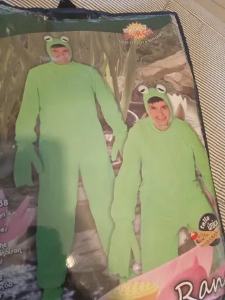 Disfraz de rana completo, ideal para fiestas o eventos. - Incluye mono enterizo, capucha con ojos y cubre manos. - Mono verde. - Talla Única - El cartón del paquete está deteriorado pero el disfraz está perfecto. ⚠️- ENVIO POR WALLAPOP ENTRE ISLAS CANARIAS 📯- ENVIO POR CORREOS A PENÍNSULA SEGUN PESO Y TARIFA A CARGO DEL COMPRADOR. 👮🏻♂️- NO ME HAGO RESPONSABLE DE CARGOS ADUANEROS 📏 - NO HAGO CAMBIOS POR TALLAJE.
