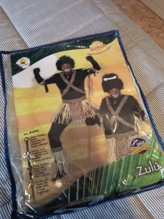 Disfraz de Zulú para adulto, talla única. - Incluye mono enterizo de color negro, flecos para brazos, flecos para piernas y cintura con delantal con flecos. - El cartón del paquete está algo deteriorado pero el disfraz está perfecto. ⚠️- ENVIO POR WALLAPOP ENTRE ISLAS CANARIAS 📯- ENVIO POR CORREOS A PENÍNSULA SEGUN PESO Y TARIFA A CARGO DEL COMPRADOR. 👮🏻♂️- NO ME HAGO RESPONSABLE DE CARGOS ADUANEROS 📏 - NO HAGO CAMBIOS POR TALLAJE.