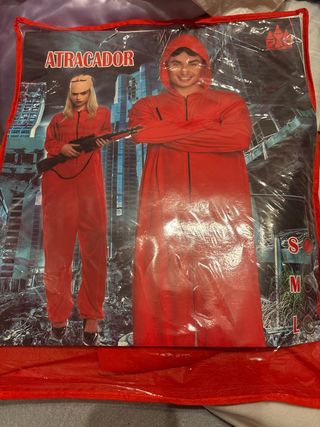 Disfraz inspirado en La Casa de Papel. - Mono completo con capucha. - Cierre de cremallera frontal. - Diseño de atracador. solo se usó una vez careta incluida pero con goma rota.