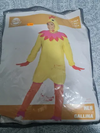 Disfraz de gallina para mujer, perfecto para fiestas temáticas o Carnaval. Precio negociable - Diseño de una pieza tipo mono. - Incluye capucha con cresta y pico. - Mangas largas y perneras. - Detalle de volantes en el cuello.