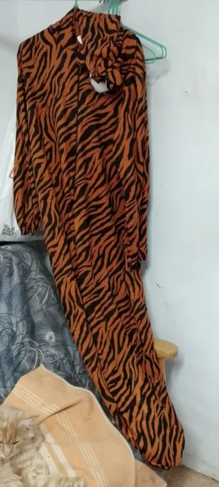 Disfraz de tigre para adulto, con un diseño de peluche y corte amplio. - Estampado de tigre en naranja y negro. - Talla única unisex. Lote 13