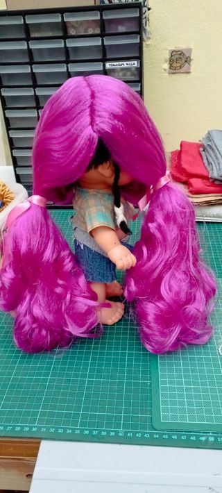 Lote de pelucas para disfraces, perfectas para fiestas y eventos. - Peluca de color rosa rizado (es nueva pero está un poquito despeinada) - Peluca de color azul rizado - Peluca de color verde trenzas - Barba, gafas y nariz de payaso - Barba de adulto blanca