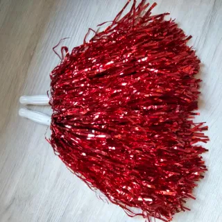 Dos pares de pompones de animadora con un acabado metalizado brillante. Perfectos para animar eventos o fiestas. Complemento ideal para disfrazarse de animadora. - Un par está sin extrenar y el otro par se utilizó en una ocasión para disfrazarse. - Diseño con abundantes tiras brillantes. - Mangos blancos para un agarre cómodo. -El precio es por el lote de los 2 pares. - Envíos rápidos y bien protegidos.