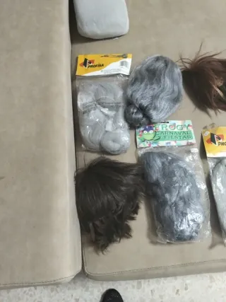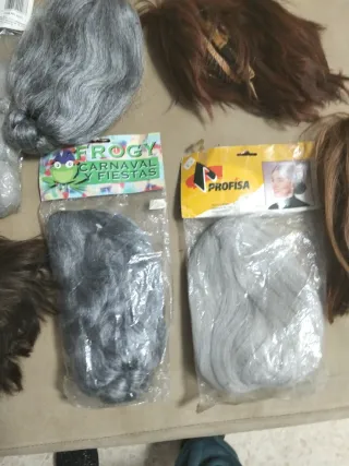 Lote de pelucas para carnavales y fiestas. - Peluca de color grisy diferentes - Peluca de color gris.