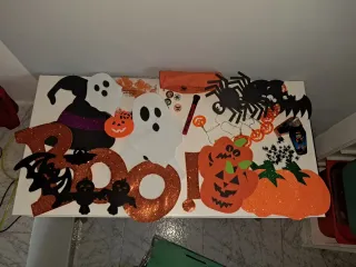 Lote de accesorios para disfraces de Halloween. Incluye varias máscaras de goma eva y complementos. - Máscara de gato (1ud) - Máscara de demonio (1ud) - Máscara de Frankenstein (1ud) - Máscara de calabaza (1ud) - Máscara de vampiro1 (1ud) - Máscara de vampiro2 (1ud) - Accesorio clavo (3ud) - Accesorio cuchillo (10ud) - Máscara de monstruo (1ud) Tengo más artículos, no dude en preguntar.