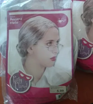 Pack de 5 pelucas carnaval nuevas para disfraz de anciana (pirata, vieja, abuela, canoso, blanco...) - Cada peluca es de color gris. - Marca: Party Planet. Lote de 5 pelucas nuevas sin usar, anciana moño pelo blanco. Algún envoltorio puede presentar defectos, totalmente nuevas precio por pack de 5 unidades, se pueden vender sueltas a 4€. Dispongo de alguna unidad más.