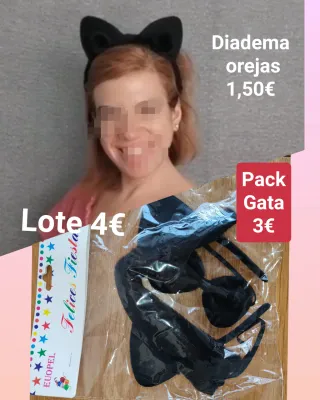 Conjunto de accesorios para disfraz de gata. - Diadema con orejas de gato. 1,50€, como nueva. - Pack de accesorios para disfraz de gata. Sin estrenar. 3€. Lote 4€.