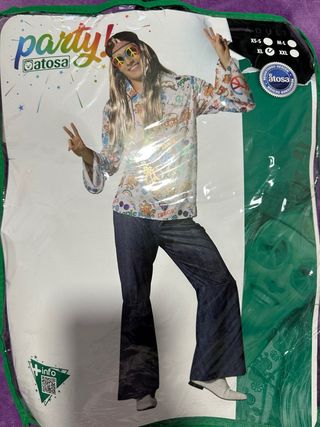 NO NEGOCIABLE Contiene: Camisa, pantalón y cinturón. Tallas Disponibles: M-L (es una única talla), XXL Este colorido disfraz te transportará directamente a los icónicos años 70, donde la música, la libertad y las flores eran protagonistas. Perfecto para fiestas temáticas, carnavales o cualquier ocasión donde quieras destacar con un look retro y lleno de energía positiva.