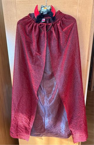 Preciosa capa roja para carnaval, ideal para completar tu disfraz. ✨ Con diadema incluida. - Incluye una diadema con cuernos. - Confeccionada en un tejido brillante y con textura. - Perfecta para adultos y adolescentes. - Nueva. A estrenar. Con Etiquetas. Tal como salió del comercio.