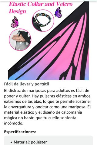Alas de mariposa para disfraz, baile, danza, cuentacuentos, teatro...En perfecto estado. La lleva una niña de 8 años. Vale para adultos perfectamente. SOLO ENVIOS.