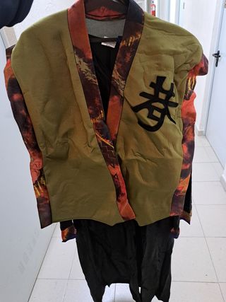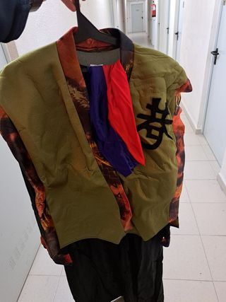 Disfraz de chino adulto talla única.viene con un gorrito un fajin y lo que se ve en la foto. Es bastante grande, yo mido 1.74 con 72 kilos y me queda grande.