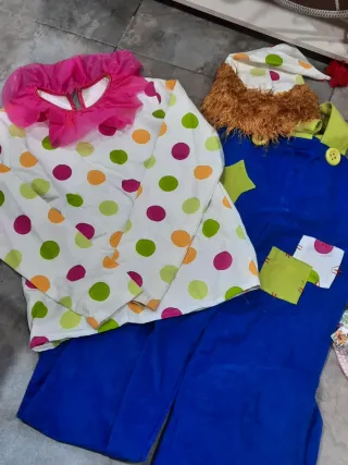 Conjunto de disfraces para mujer, uno de vaquera y otro de payaso, precio por los dos