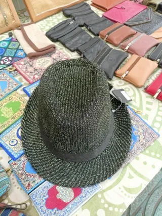 Sombrero con un diseño llamativo, perfecto para carnavales o disfraces. - Tejido con hilos dorados. - Banda negra alrededor.