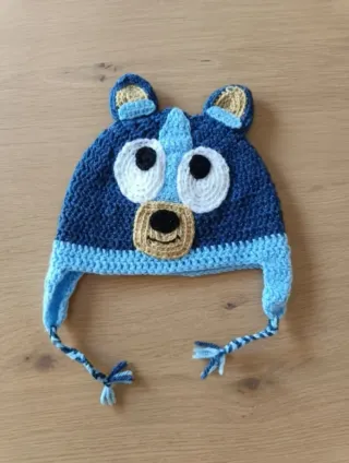 Vendo gorros de lana de Bluey y Bingo hechos a mano. Se fabrican bajo pedido (es necesario indicar edad y/o diámetro de la cabeza). Ideales para disfraz de carnaval y aprovechables durante el invierno. Puedes pedirlos juntos o por separado, por 15€ cada uno. Bebés hasta 6 meses: suplemento de 2€ por utilizar una lana especial. ¡Acepto envíos! - Diseño de Bluey en color azul. - Diseño de Bingo en color naranja. - Detalle de orejas y cara de los personajes. - Cintas para atar con trenzas.